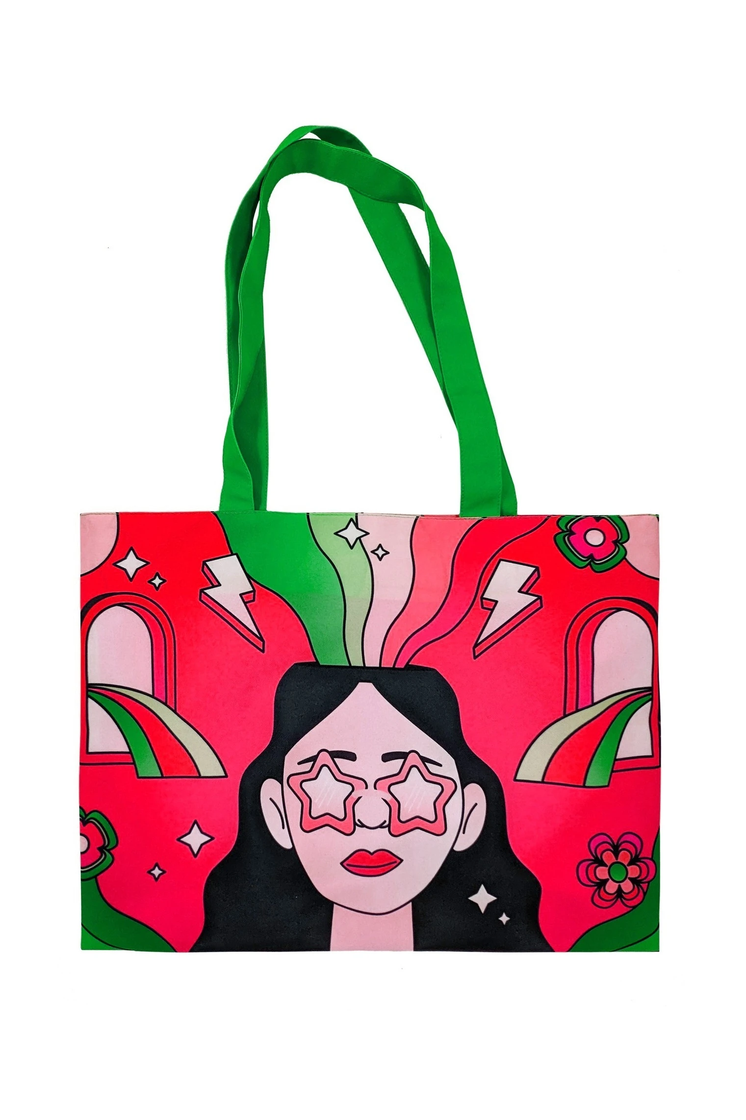 . Полноцветная печать осуществляется с двух сторон по всей поверхности сумки, ручки сумки запечатываются фоновой заливкой без элементов дизайна. Изображение располагается в соответствии с лекалом. Нанесение входит в стоимость сумки.