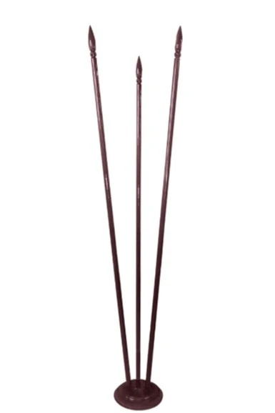 Древко. Длина древка составляет 2,2 м. Диаметр древка - 3,4 см. Нижний край древка имеет проточку - часть древка длиной 5 см меньшая по диаметру (3 см) без лакокрасочного покрытия, для установки древка в основание Блин. На верхнем срезе древка установлена футорка с резьбой М6 для ввинчивания навершия. Древки поставляются цельными. Вес цельного древка 2,2 м - 1,58 кг.