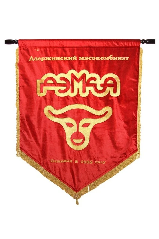Фирменные и рекламные штандарты сегодня стали непременным атрибутом любой серьезной современной компании. Штандарты с логотипом, фирменной символикой украшают фасады офисов, столы руководства и помещения для переговоров. Представленный штандарт был изготовлен для празднования юбилея Дзержинского мясокомбината.