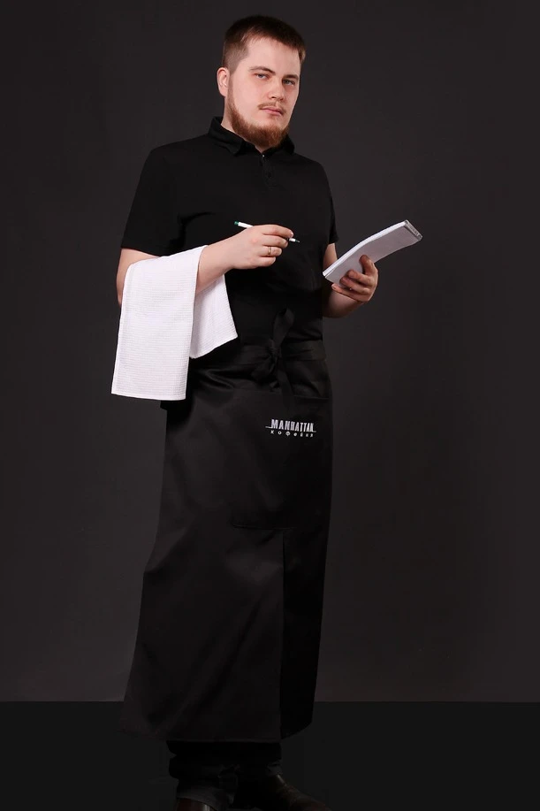 Фартук Бармен - отличный и многофункциональный элемент корпоративной одежды. Комфортная длина и ширина фартука подойдет людям с любыми параметрами. Разрез в середине фартука позволит сотруднику свободно передвигаться, не сковывая движений. Дополнительным плюсом станет вместительный передний карман, позволяющий держать все необходимые для работы вещи при себе.