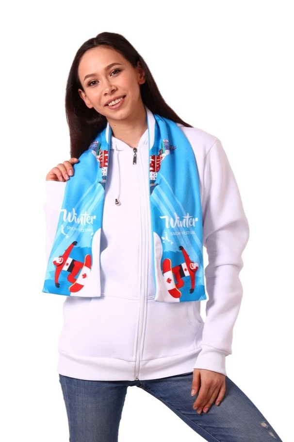 Особенности нанесения: Полноцветная печать осуществляется на всей поверхности шарфа в процессе производства. Изображение располагается в соответствии с лекалом. Нанесение входит в стоимость шарфа.