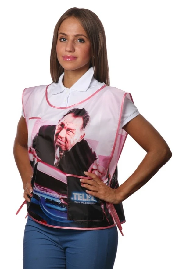 Накидка с полной запечаткой надевается поверх основной одежды, а по своей форме напоминает жилет. Такие изделия часто можно увидеть на промоутерах, раздающих рекламные листовки, и на интервьюерах, занимающихся проведением соцопросов. Приобретайте у нас накидки с нужными вам изображениями или надписями для своего персонала, контактирующего с людьми от лица вашей фирмы, общественной организации или политической партии.
