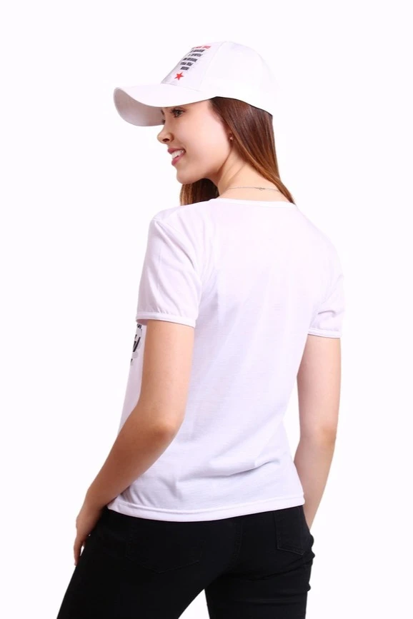 Сублимация. Полноцветная печать осуществляется методом сублимации не более формата А3. Изображение располагается в соответствии с лекалом. Возможна печать на рукавах футболки. Нанесение осуществляется за дополнительную плату.