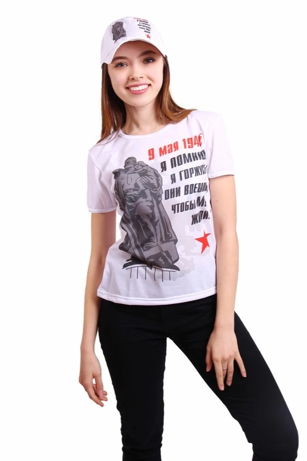 Модель. Прямой силуэт. Рукав короткий. Футболка имеет боковые швы без разрезов по низу изделия. Обработка горловины руликом (кантом) из основной ткани. Форма ворота О-образная.