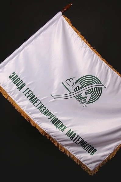 Знамя "ЗГМ" обшитое тесьмой, под цвет золота, может служить благодарностью вашему спонсору или же партнеру. Такой презент выглядит очень изысканно и роскошно, благодаря компьютерной машинной вышивке. Почти все большие компании любят ритуал вручения знамени. Данное изделие имеет карман, в который легко вдевается древко.