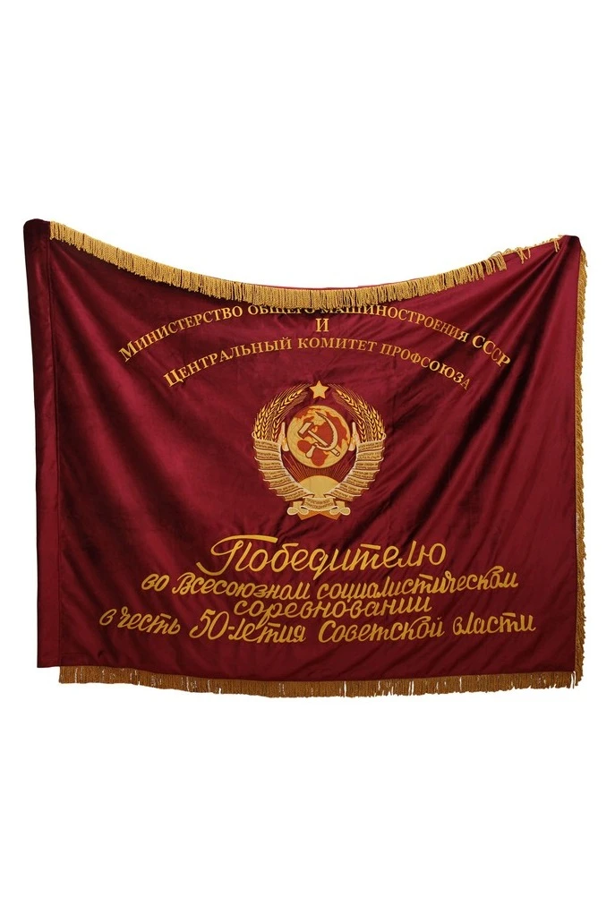 Знамёна с символикой СССР - истинные творения советского времени. Сделать памятную надпись, запечатлеть фамилию того, кому хотите подарить данное знамя - это изумительный подарок, тем, кому дорога память. Многие очень трепетно относятся к советской символике, к сожалению, даже при бережном уходе, любой предмет теряет былой вид, мы с удовольствием изготовим данные полотна с вашей атрибутикой.