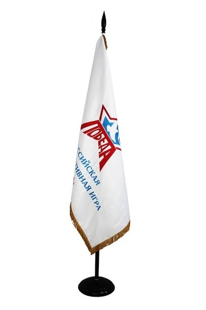Знамёна имеет необычный, более сложный дизайн, чем флажковые изделия. На них представлена наиболее важная информация компании, например, герб предприятия. Огромное количество фирм, заводов используют способ развития своего имени, бренда именно в таком формате, печатая лого на фирменных знаменах и декорируя с помощью них свои офисы и кабинеты.