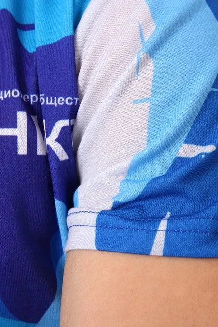 Сублимация. Полноцветная печать осуществляется на всей поверхности футболки в процессе производства. Изображение располагается в соответствии с лекалом. Нанесение входит в стоимость футболки. Совмещение изображения на швах осуществляется за дополнительную плату.