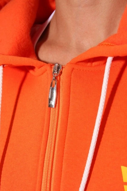 Модель. Прямой силуэт. Балахон на молнии. Длинные рукава. По низу толстовки и рукавов прошита специальная тканная резинка кашкорсе в цвет толстовки. Два раздельных кармана по типу кенгуру. Капюшон пришивной двухслойный, внутренний слой из однотонной кулирной глади с лайкрой стандартных цветов на выбор. У края капюшона продет плоский шнур шириной 15 мм стандартных цветов.