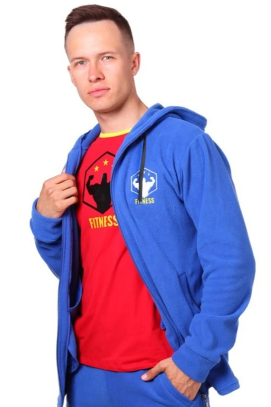 Модель. Прямой силуэт. Толстовка на молнии. Длинные рукава. По низу толстовки продета резинка и установлены фиксаторы. Толстовка с капюшоном. У края капюшона продет плоский шнур шириной 15 мм стандартных цветов. Два прорезных кармана в листочку без молнии. Возможно бесплатное комбинирование деталей разных цветов (например, рукава могут отличаться по цвету от остальных деталей). Толстовка выполнена из флиса 300 гр.