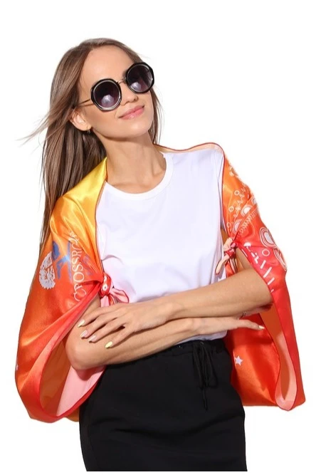 Платок — новинка из прошлого. Вновь вернув себе лидирующие позиции в качестве стильного аксессуара, платок надолго обосновался в гардеробах модниц. Универсальность этого изделия позволяет его носить в качестве галстука или накидки на работе, повязывать на голову во время проведения массовых мероприятий или просто для того, чтобы спастись от жары, носить на шее в качестве ожерелья, использовать как пояс на брюках или джинсах.
