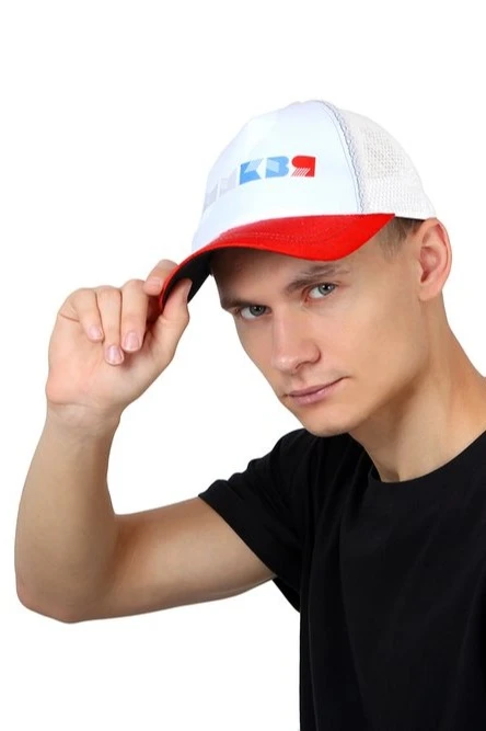Модель. Бейсболка взрослая облегченная. Купол бейсболки состоит из пяти клиньев. Пластиковая застежка для регулировки размера белого или черного цветов.