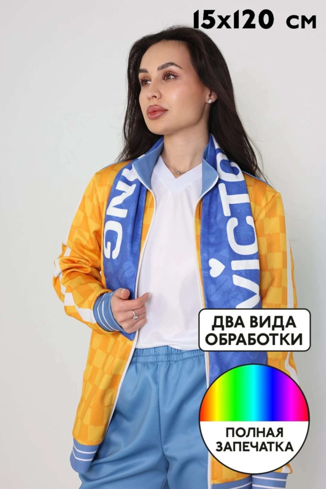 Особенности нанесения: Полноцветная печать осуществляется на всей поверхности шарфа в процессе производства. Изображение располагается в соответствии с лекалом. Нанесение входит в стоимость шарфа.