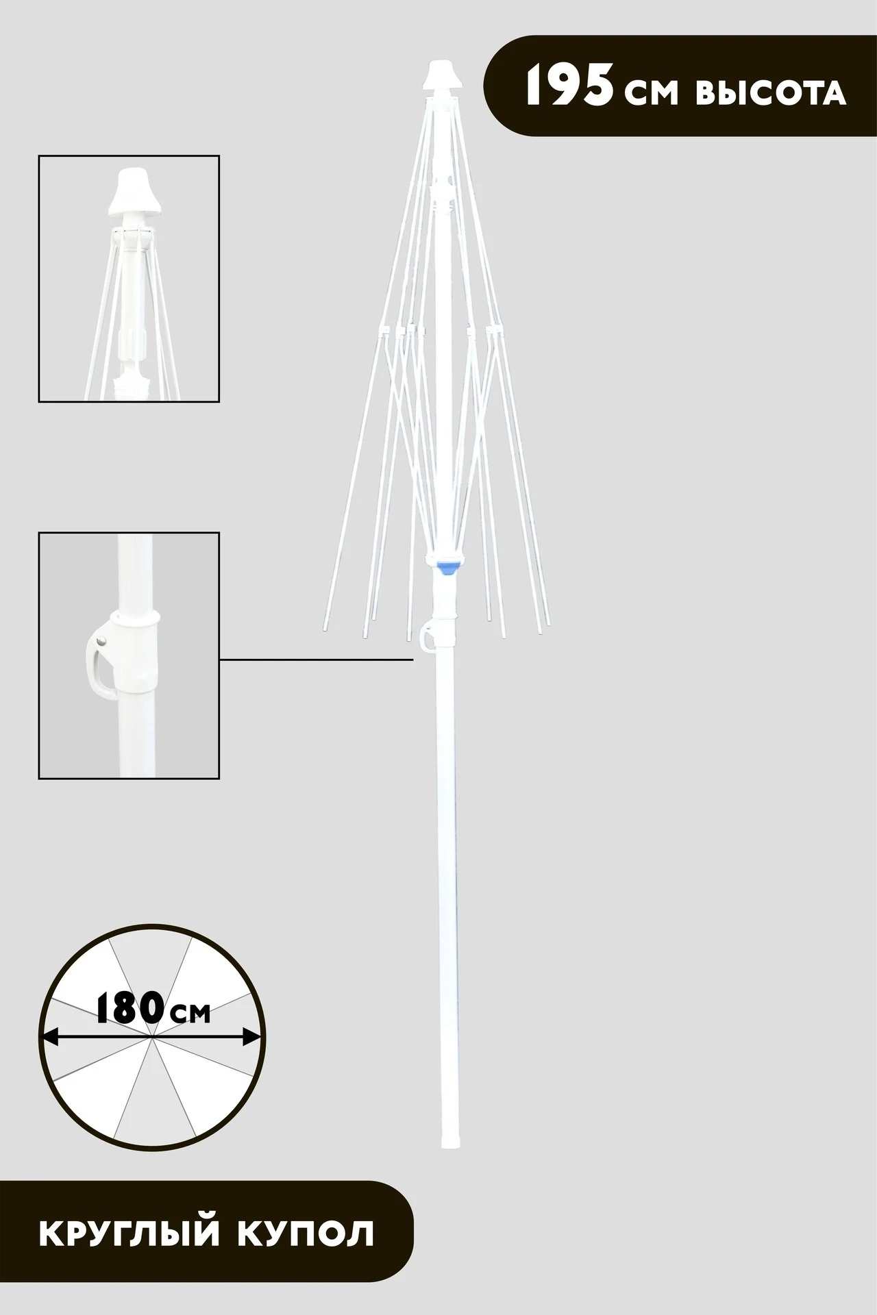 Размеры: Круглый купол - 1,8х1,8 м, количество спиц – 8 шт. Высота в собранном виде без основания 1,95 м.