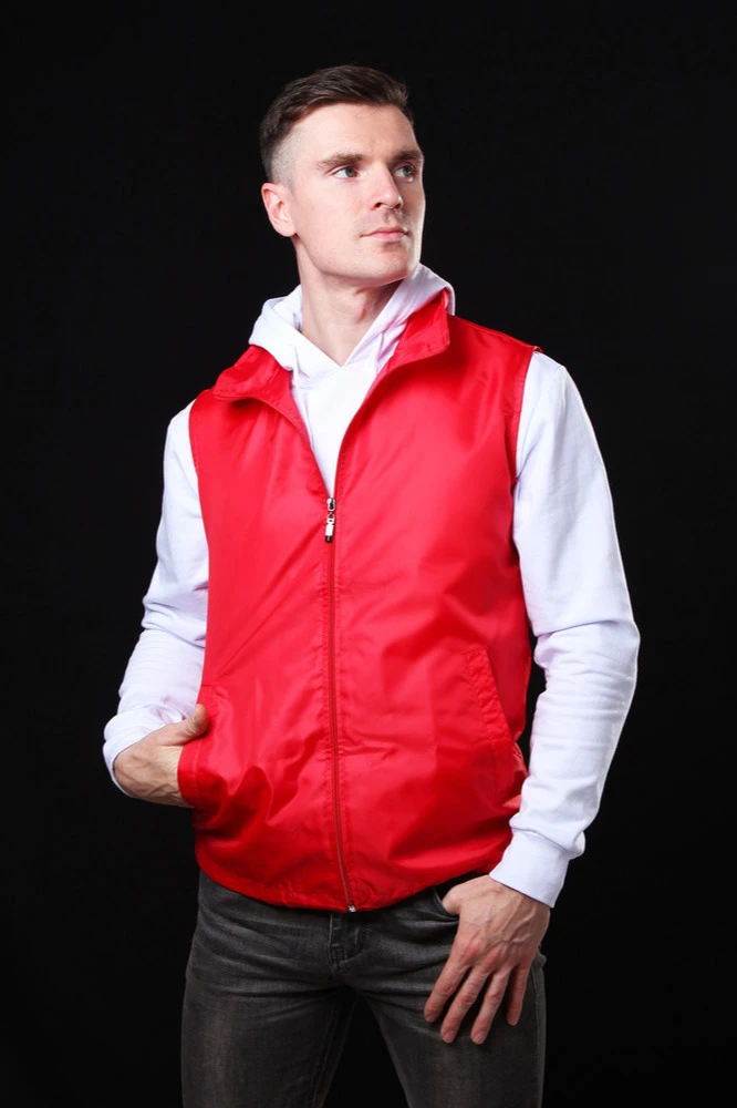 Модель: Жилет Брайт унисекс однотонный, с прямым силуэтом, без капюшона. Два прорезных кармана в листочку, без молнии. Жилет застегивается на молнию стандартных цветов. Молния разъемная. Жилет без подклада.