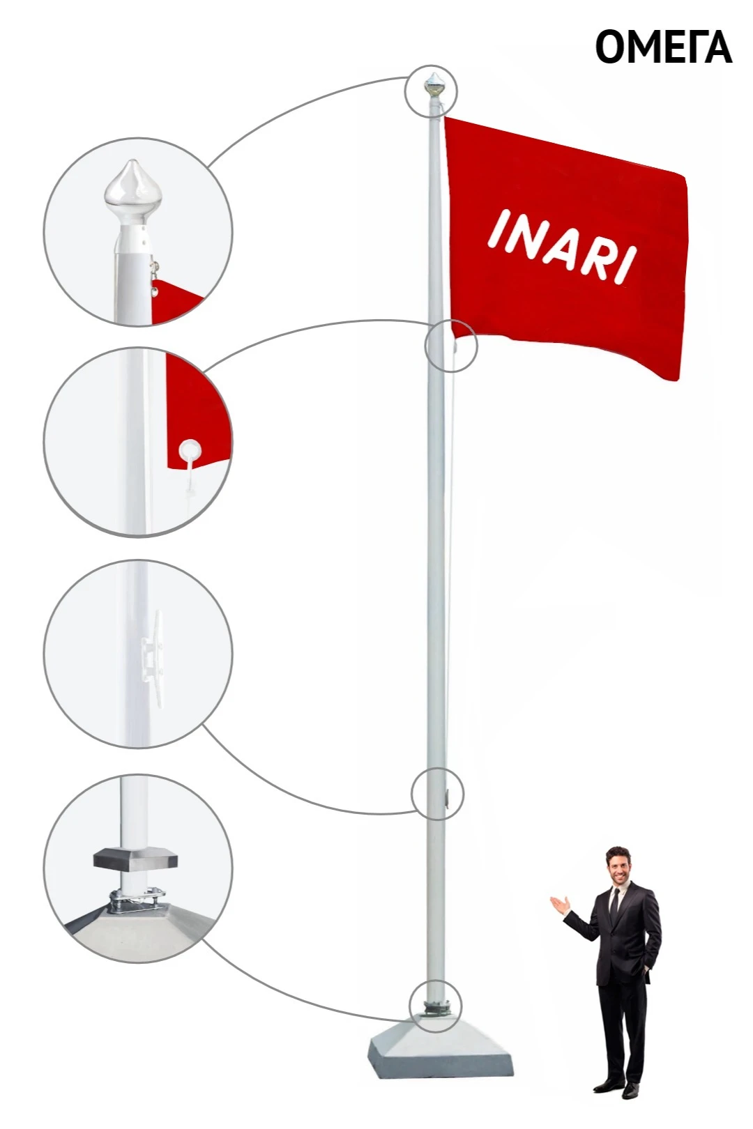 Комплектация флагштока из стекловолокна с открытым механизмом: