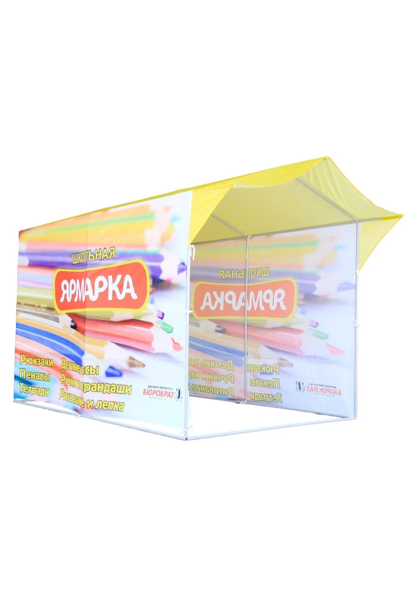 Легкий и прочный тент предназначен для торговой палатки и палатки для промоакций, которые устанавливаются в павильонах и под открытым небом. Тент с козырьком над входом в палатку, натянутый на специальную конструкцию, защитит вас и вашу продукцию в любое время года от солнца, дождя или снега.
