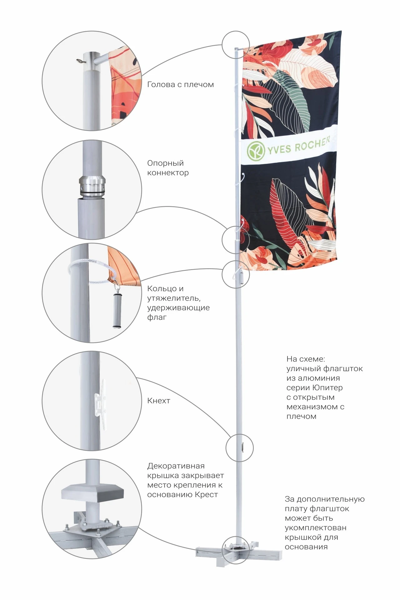 Комплектация флагштока из алюминия с плечом: