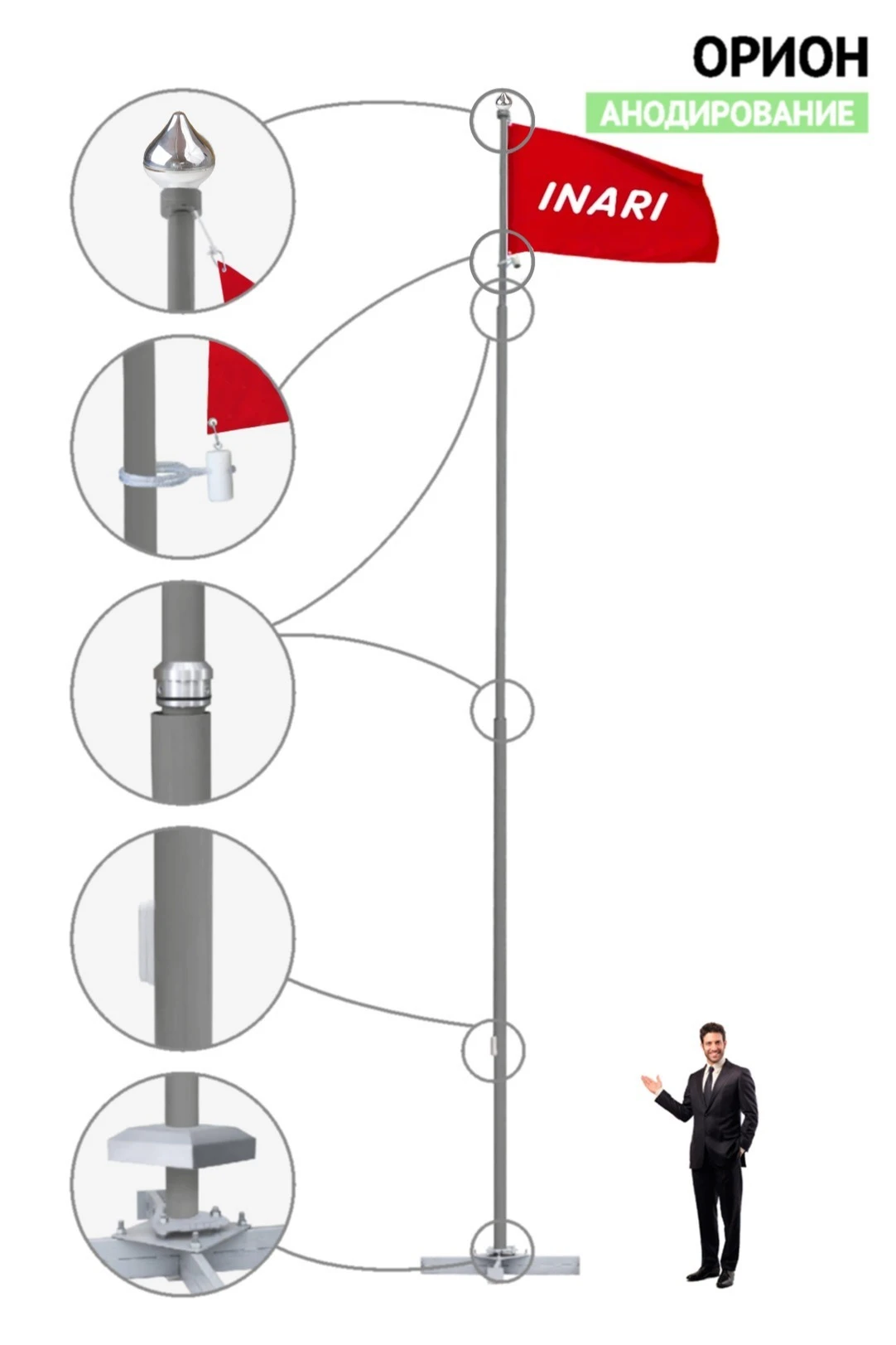 Комплектация флагштока из алюминия с закрытым механизмом: