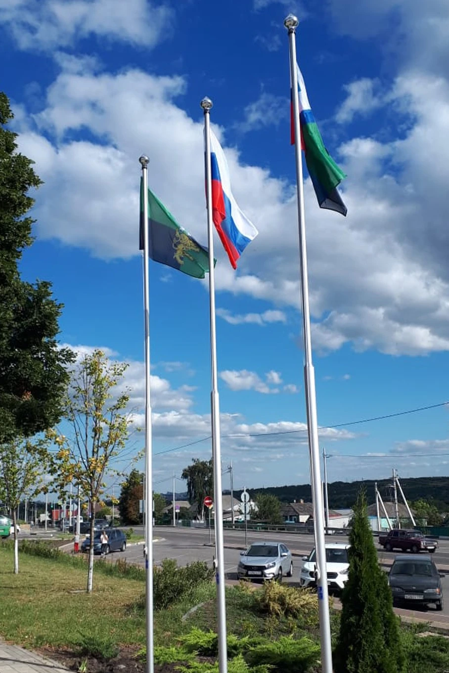 Рекомендуемые размеры флагов: 90х135 см, 100х150 см - горизонтальные флаги; 100х300 см, 120х300 см, 150х300 см - вертикальные флаги.