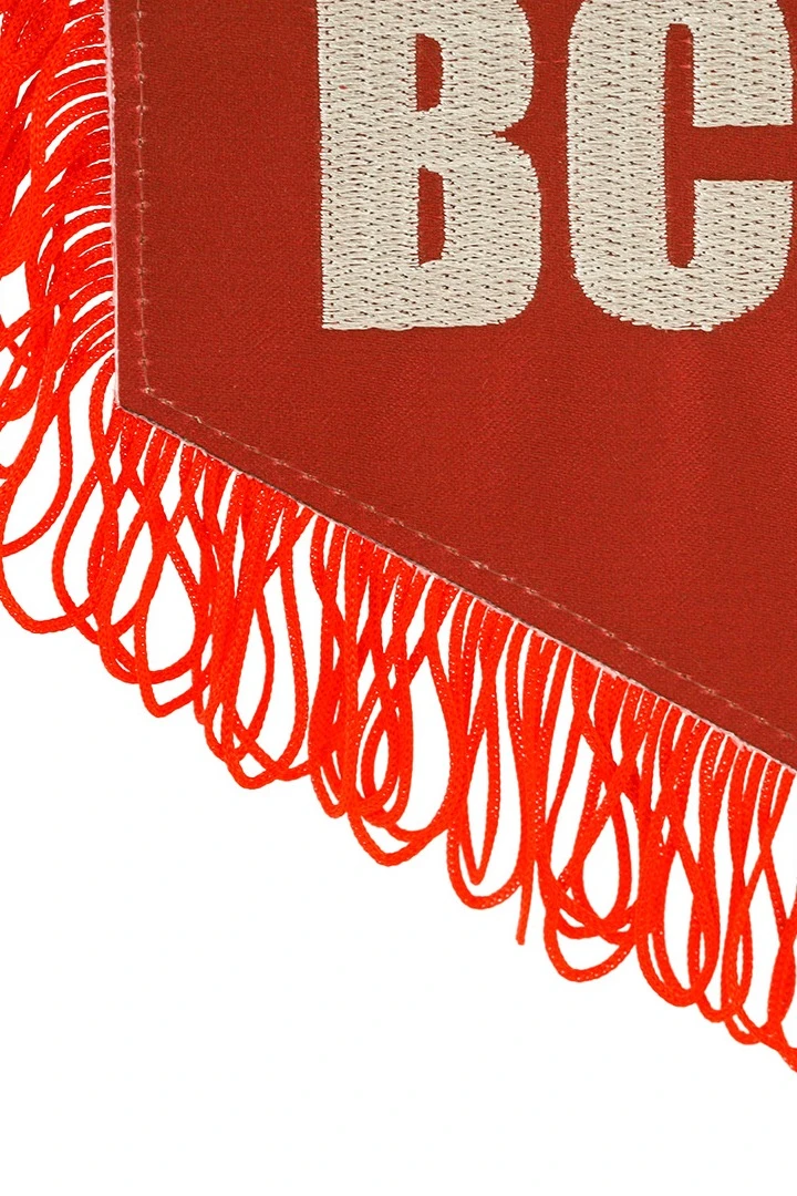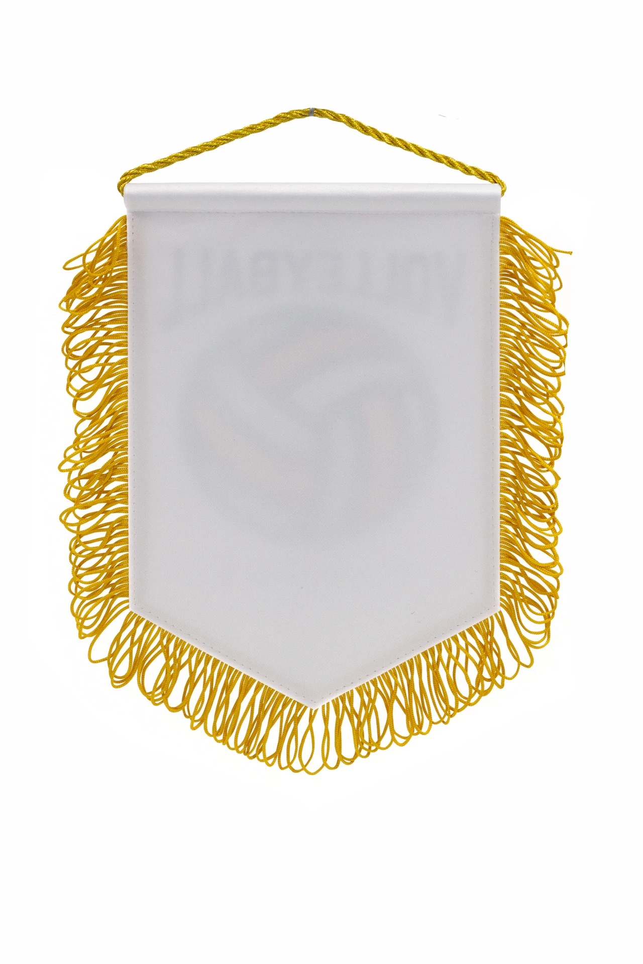 Тканевый вымпел с полноцветной двусторонней печатью и вышивкой деталей является эффективным рекламным носителем. Обшивка вымпела бахромой визуально увеличивает его, а так же делает его более заметным и визуально обрамляет изображение, нанесённое на вымпел.