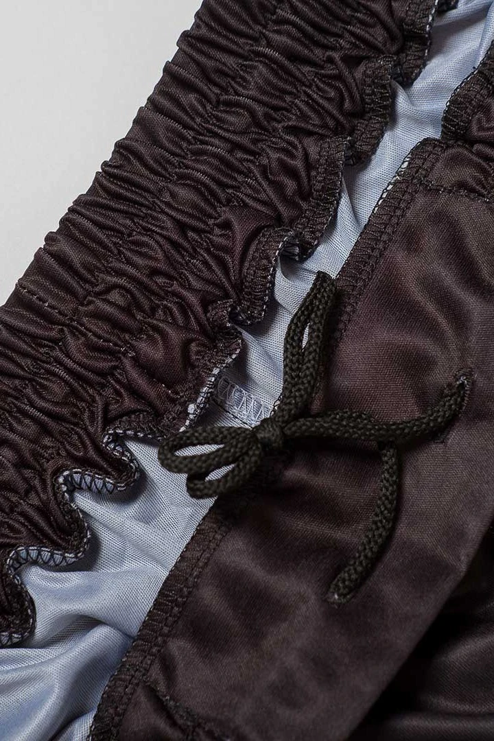 • Шорты: Прямые на резинке. Дополнительно регулируются полиэфирным шнуром. Ширина пояса 4 см. За дополнительную плату может быть изготовлен подклад из подкладочной сетки белого цвета.