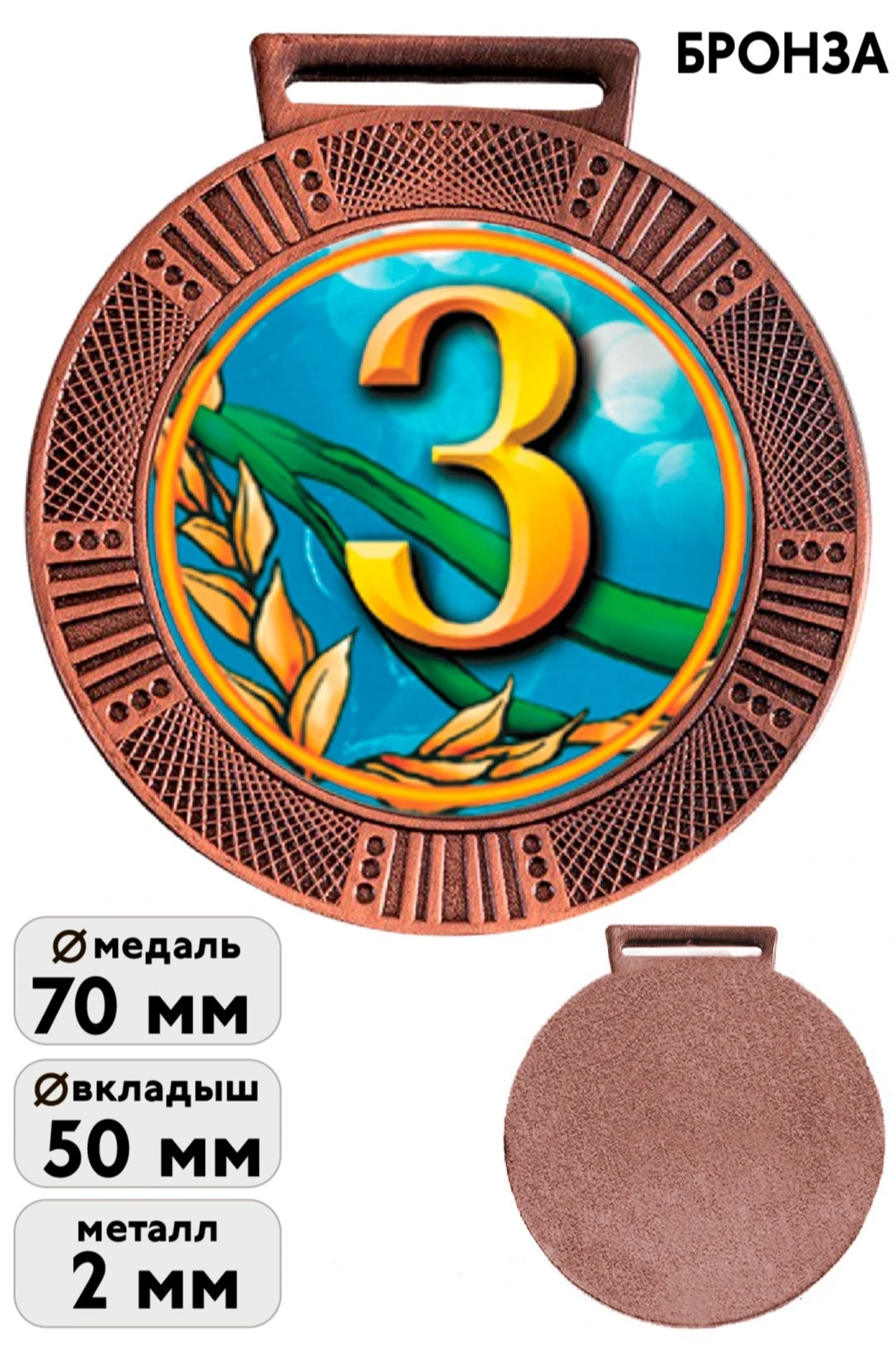 Диаметр медали: 70 мм.