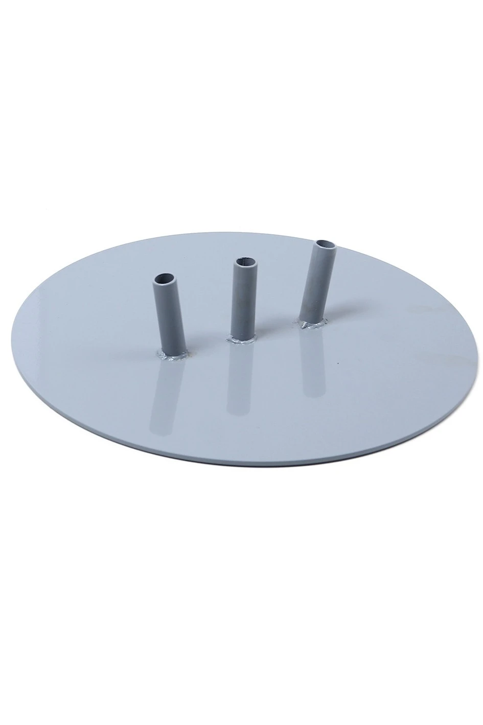 Основание Диск 3 штока изготовлено из стального листа толщиной 4 мм, диаметр - 40 см. К основанию приварены металлические трубки диаметром 2 см и длиной 7 см.