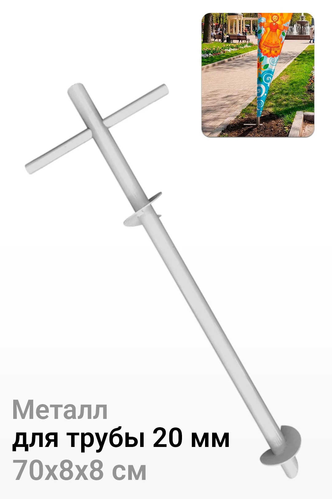 Основание Винт рассчитано для использования на грунте, снегу, песке и других рыхлых неровных поверхностях. С помощью рычага (воротка), которым комплектуется данное основание, оно вкручивается в почву, а на вкрученное основание устанавливается мобильный флагшток. Все элементы конструкции выполняются из стали. Основание используется для флагштоков Бриз, Парус, Капля, Перо, Крыло, Флекс всех высот.