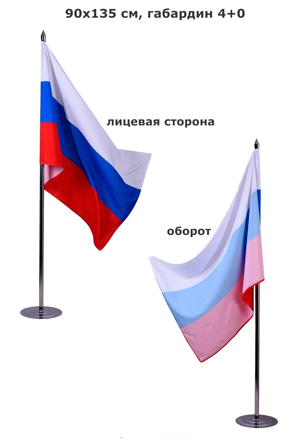 Флаг из габардина изготавливается из одного слоя, либо двух слоев ткани сшитыми между собой по периметру флага. Нанесение выполняется методом сублимации.