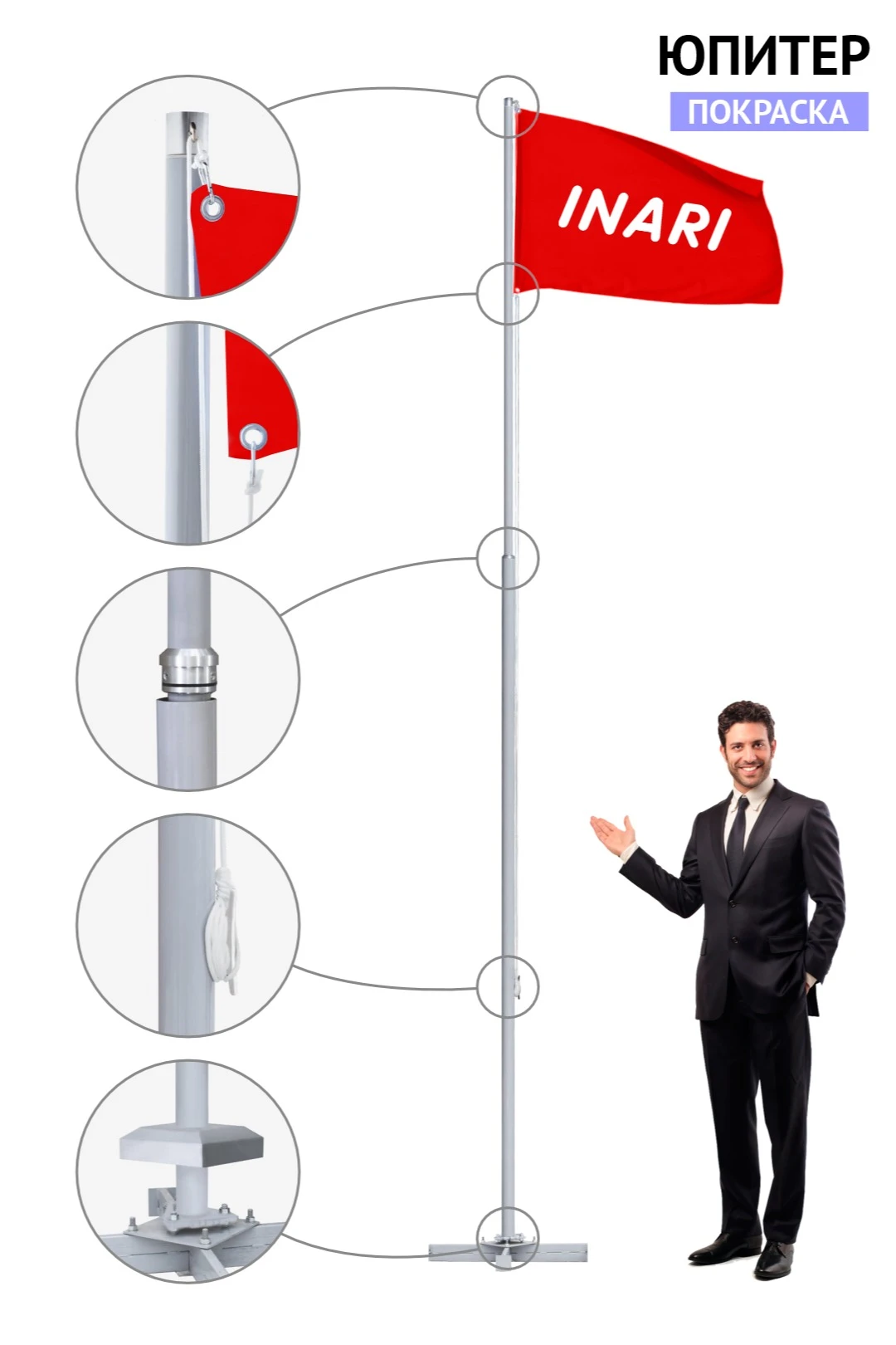 Флагшток из алюминия заслужил свою популярность благодаря разборной мачте. В сложенном виде даже самый высокий флагшток из алюминия не будет длиннее 6-и метров. За счёт этого качества покупатель флагштоков из алюминия может значительно сэкономить средства на транспортировке флагштока.