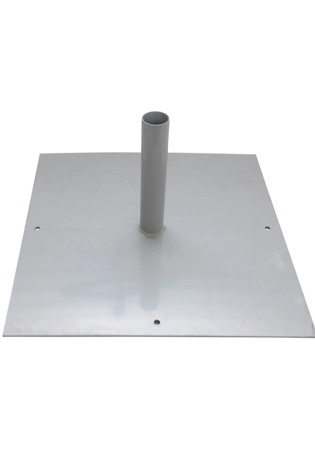 Основание выполнено из стали, окраска порошковая серого (RAL 7040) цвета. По углам основания 4 отверстия диаметром 10 мм для фиксации к поверхности. Для обеспечения большей устойчивости поверх основания рекомендуется укладывать плитки (камни), в зависимости от высоты флагштока, ветровой зоны и многолюдности места.