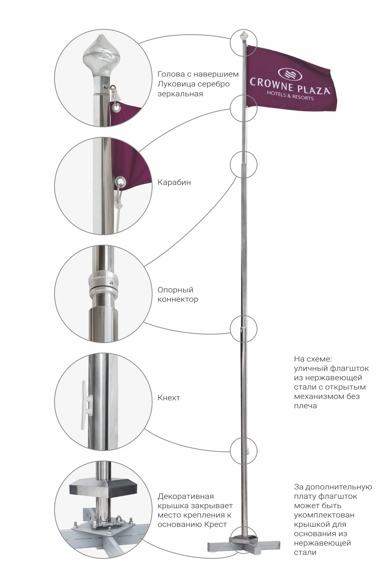 За дополнительную плату флагшток может быть укомплектован крышкой для основания из нержавеющей стали размером 29х29х8,5 см.