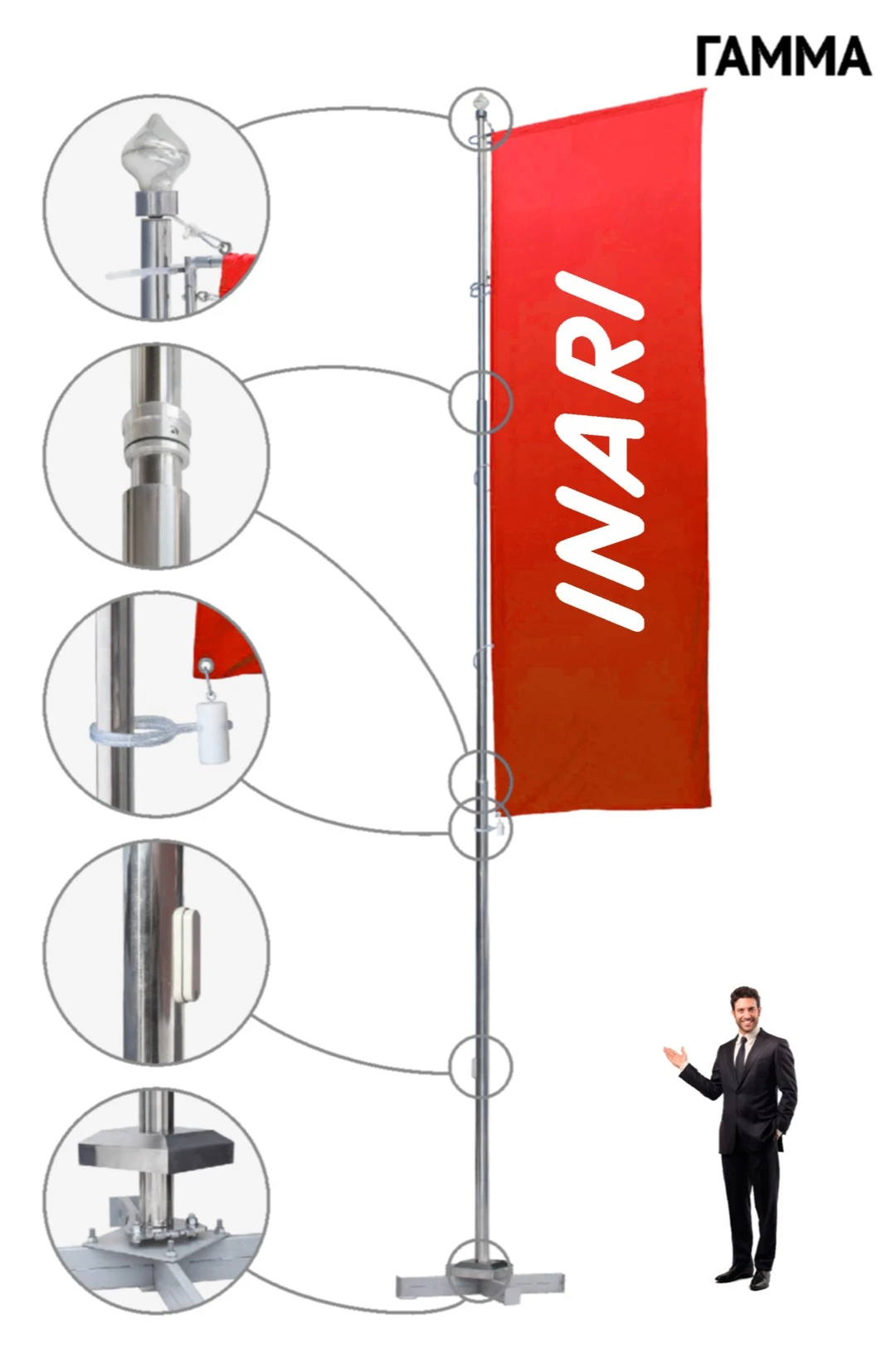 Флагшток из нержавеющей стали с плечом с закрытым механизмом 7 м, Гамма