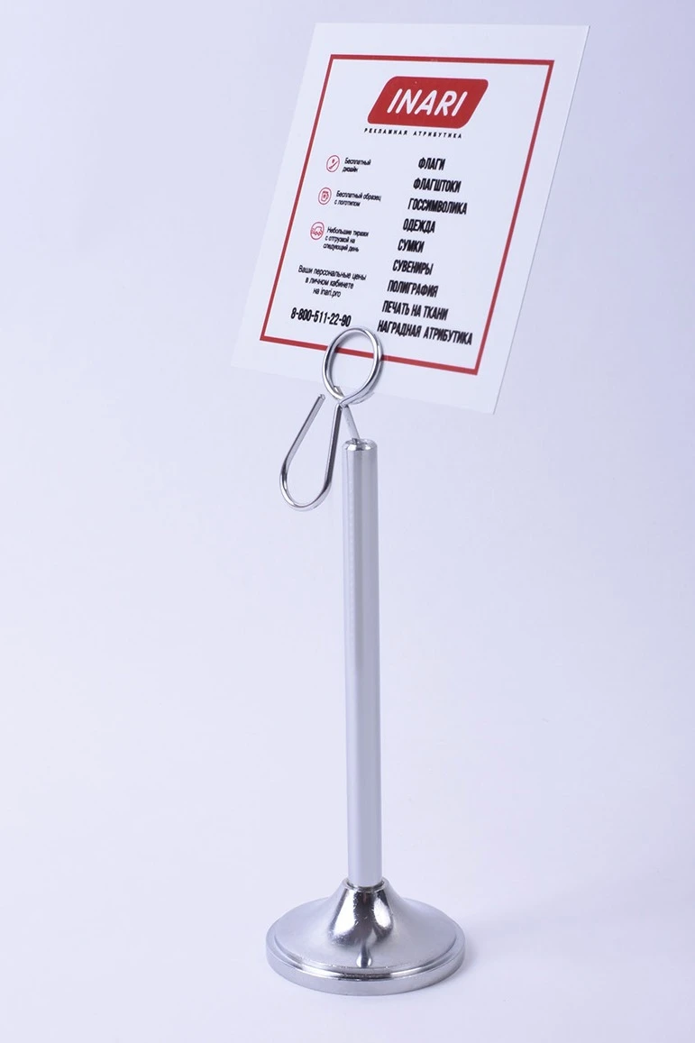 Металлическая хромированная подставка идеально подходит для размещения информации: меню, визиток, ценников, фотографий и другой печатной продукции.