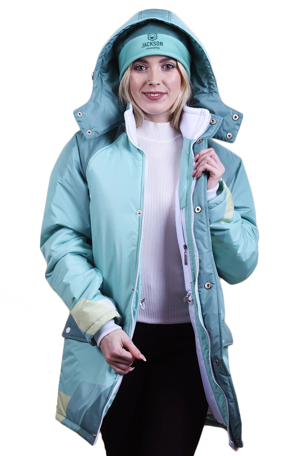 Модель. Куртка Вест на двойном утеплителе, в качестве подклада флисовая кокетка, низ из дешайна с полной запечаткой. Застегивается на металлическую молнию, которая закрывается планкой на кнопках. Куртка имеет два прорезных кармана в листочку с клапаном. Рукава реглан с трикотажными манжетами, воротник стойка и съемный капюшон на молнии. Внутренний карман на молнии. Температурный режим куртки до -30 градусов.