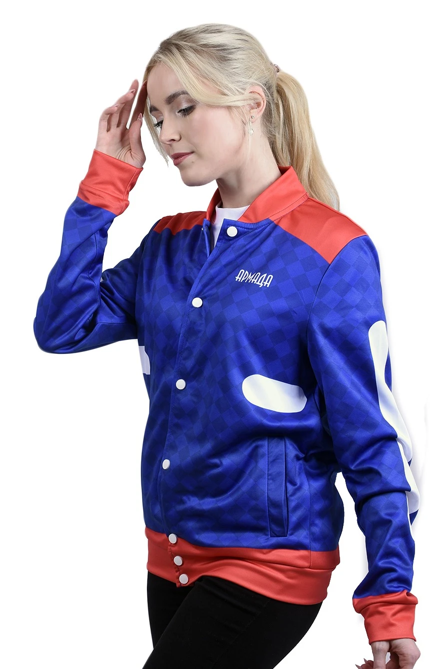 Модель. Прямой силуэт, без капюшона, без подклада. Длинные рукава с манжетами из сублимационной ткани сандвич браш. Низ бомбера и воротник с закругленными углами также выполнены из сублимационной ткани сандвич браш. Вариант застежки бомбера на выбор: на семь металлических кнопок или на молнию. Два боковых кармана в листочку без молнии.