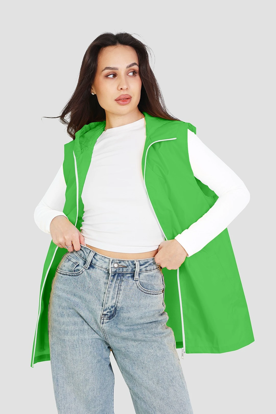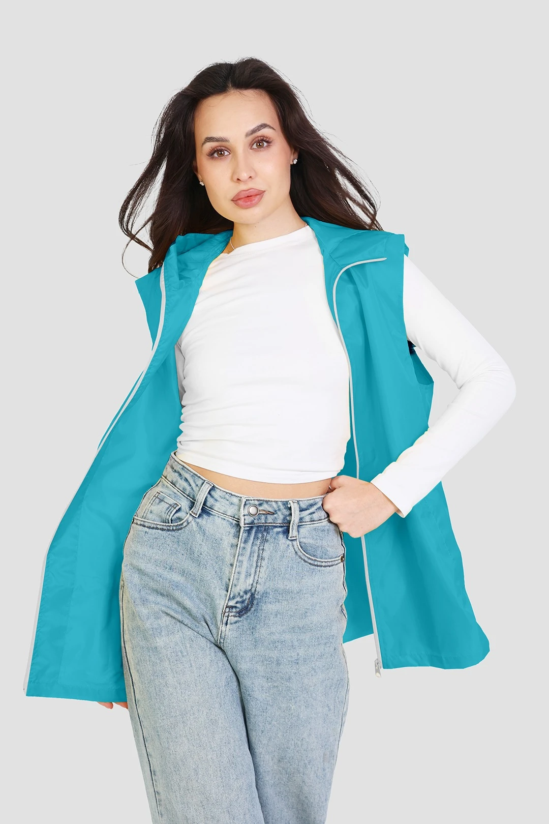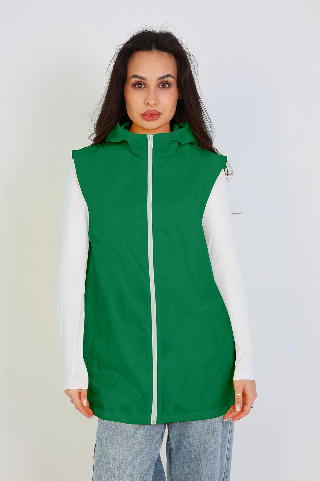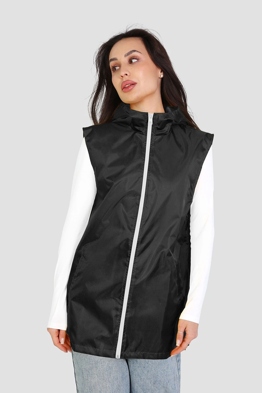 Модель. Жилет Профи унисекс с прямым силуэтом. Капюшон пришивной, на верхней части у края капюшона пришита резинка для удобства. Два прорезных кармана в листочку. Застегивается на молнию, Жилет без стежки с подкладом из шелка расцвечивания.