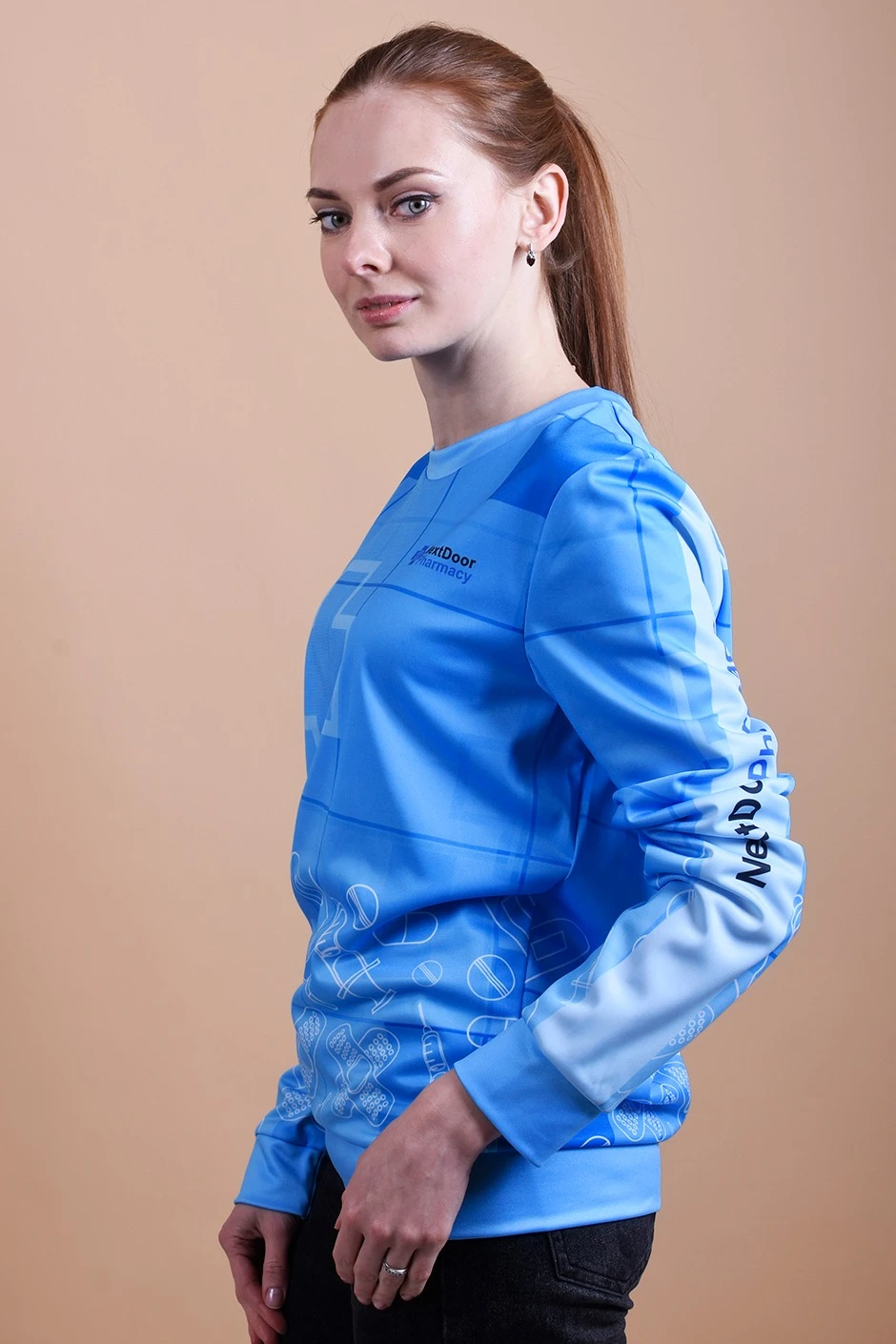 Сублимация. Полноцветная печать осуществляется на всей поверхности свитшота в процессе производства. Изображение располагается в соответствии с лекалом. Нанесение входит в стоимость свитшота.
