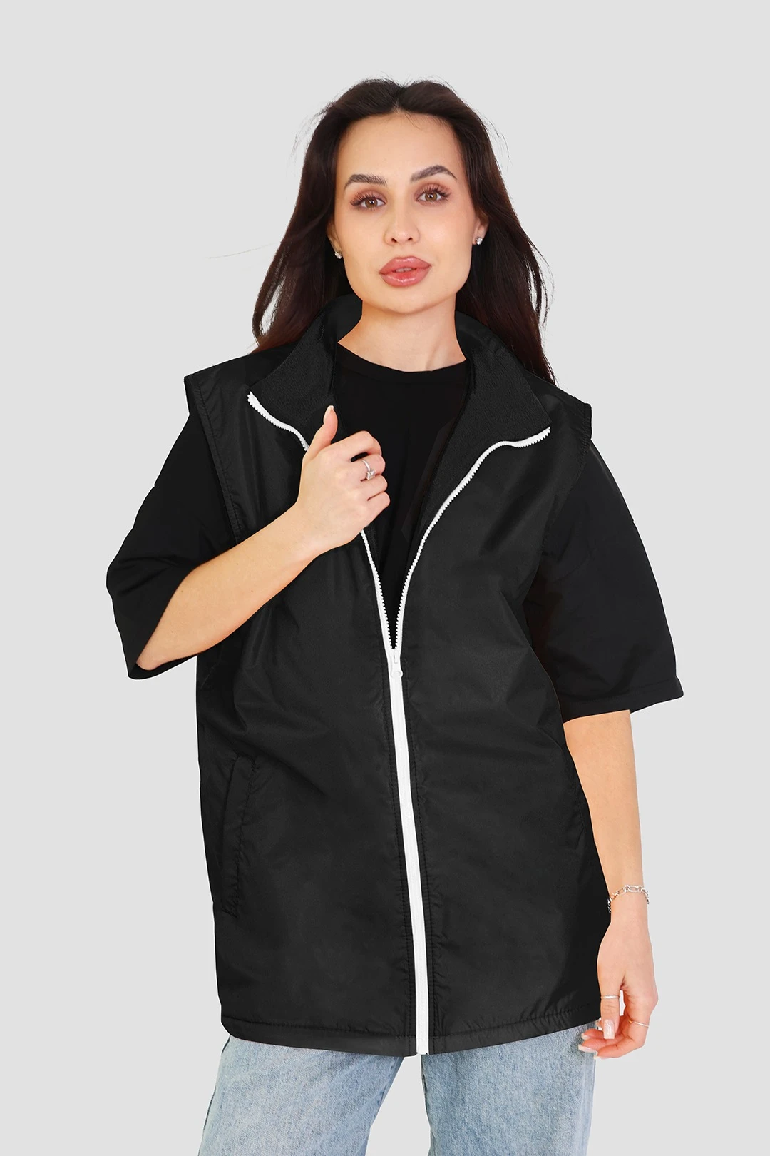 Модель. Жилет Райли унисекс с прямым силуэтом без капюшона. Имеет два прорезных кармана в листочку. Застегивается на молнию. Жилет без стежки с подкладом из флиса стандартных цветов.