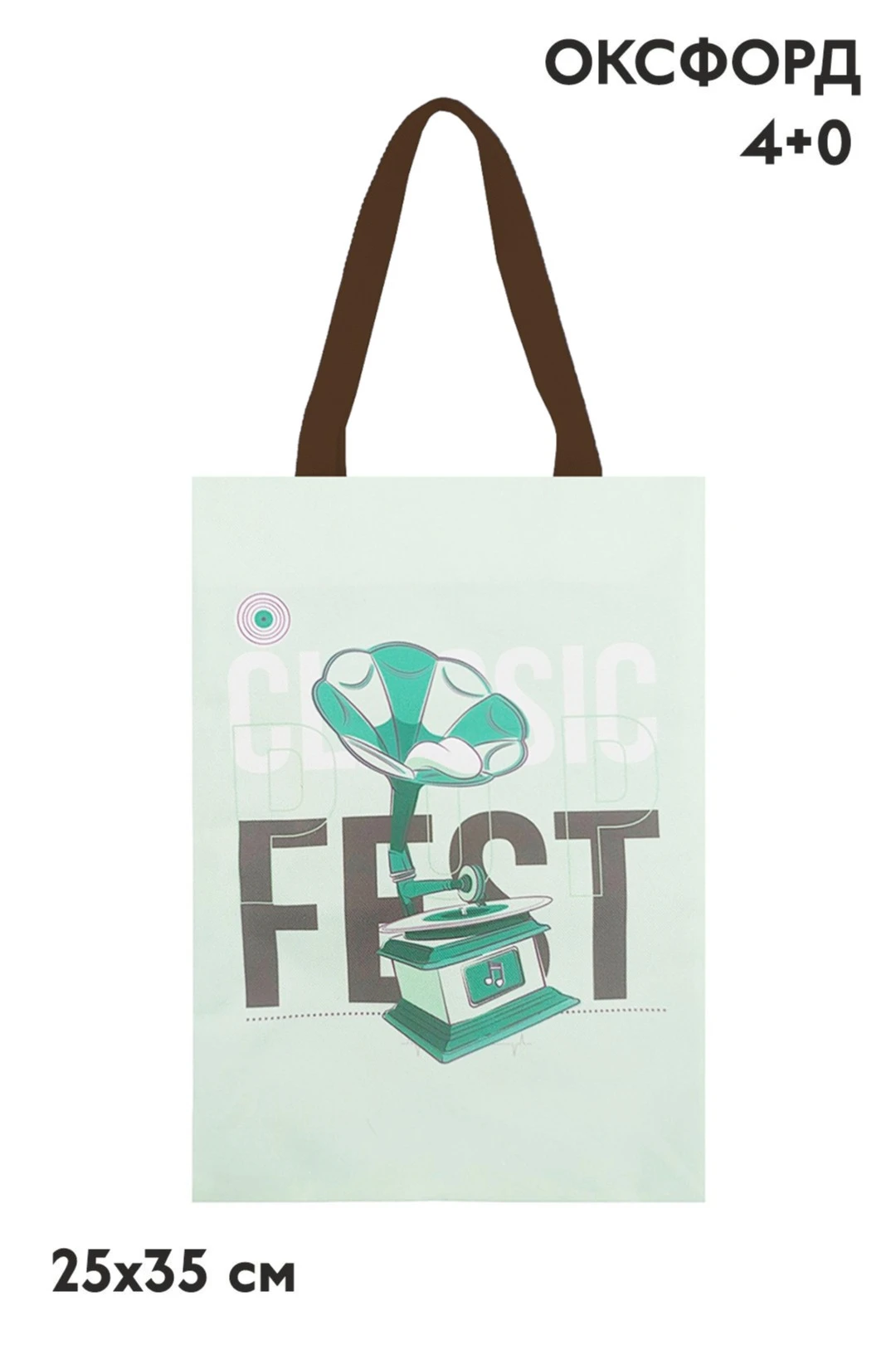 Печать с одной стороны: полноцветная печать осуществляется на одной стороне сумки в процессе производства, вторая сторона выполнена из основного материала без печати, ручки сумки выполнены из цветной стропы шириной 3 см без элементов дизайна.