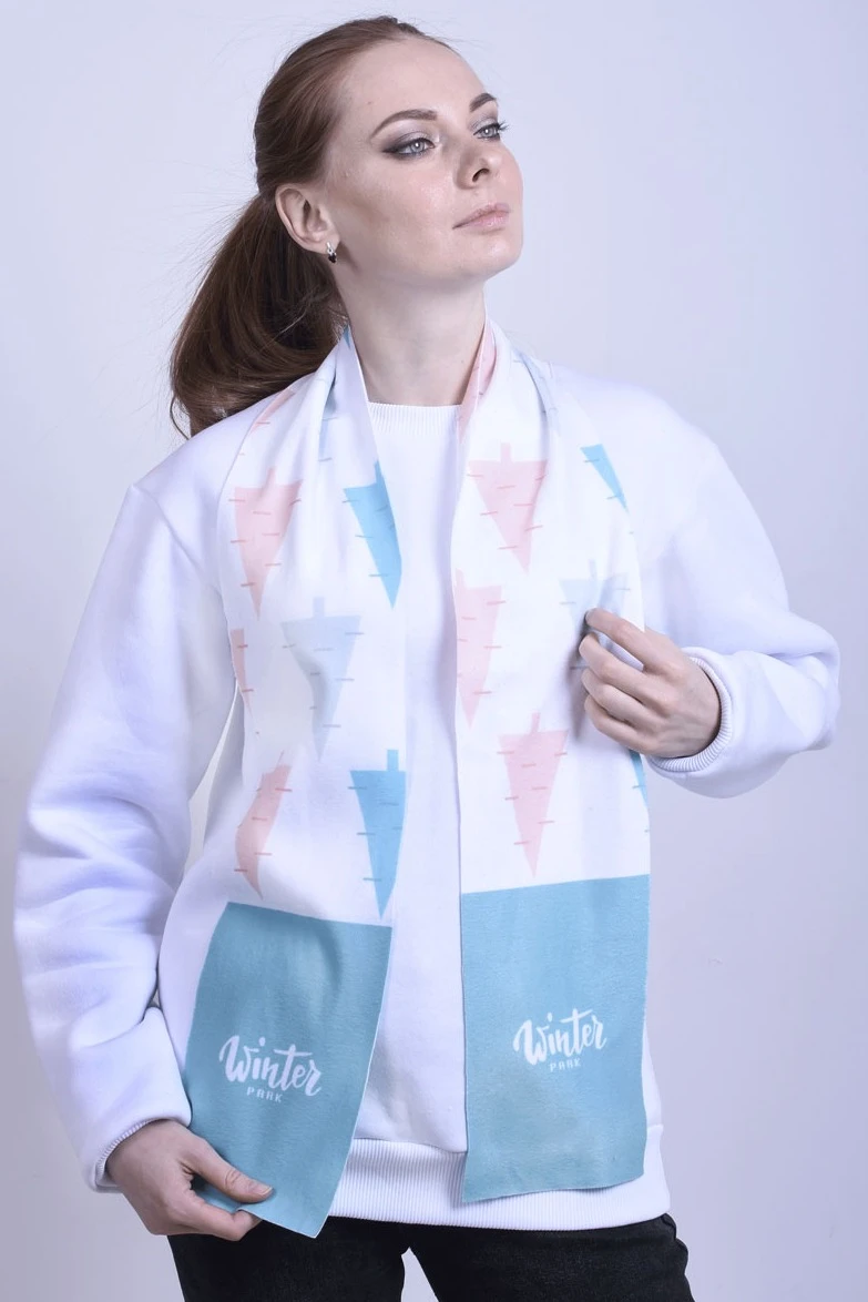 Особенности нанесения: Полноцветное нанесение осуществляется методом сублимации на одну сторону материала. Изображение размещается в соответствии с лекалом. Нанесение на шарф входит в стоимость шарфа.