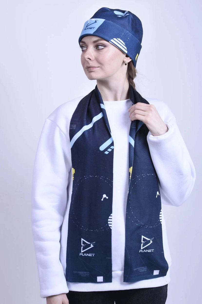 Шарф однослойный утепленный 15х150 см, с полной запечаткой "Planet"
