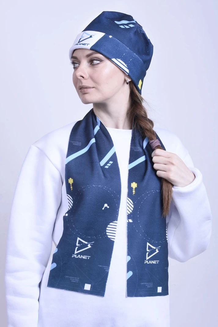 Шарф однослойный утепленный 15х120 см, с полной запечаткой "Space"