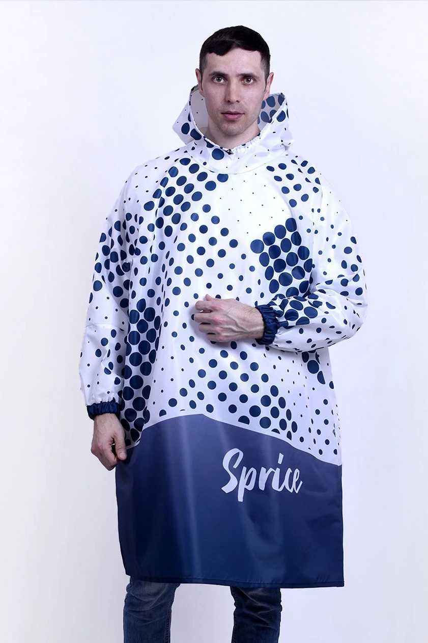 Дождевик Слайм сшит из современной ткани, защищающей от дождя и ветра. У нас вы сможете приобрести оптовую партию этих изделий по выгодной цене. Мы изготовим дождевики и нанесем на поверхность изделий необходимые клиентам изображения.