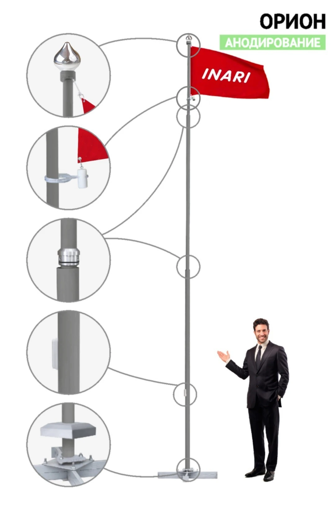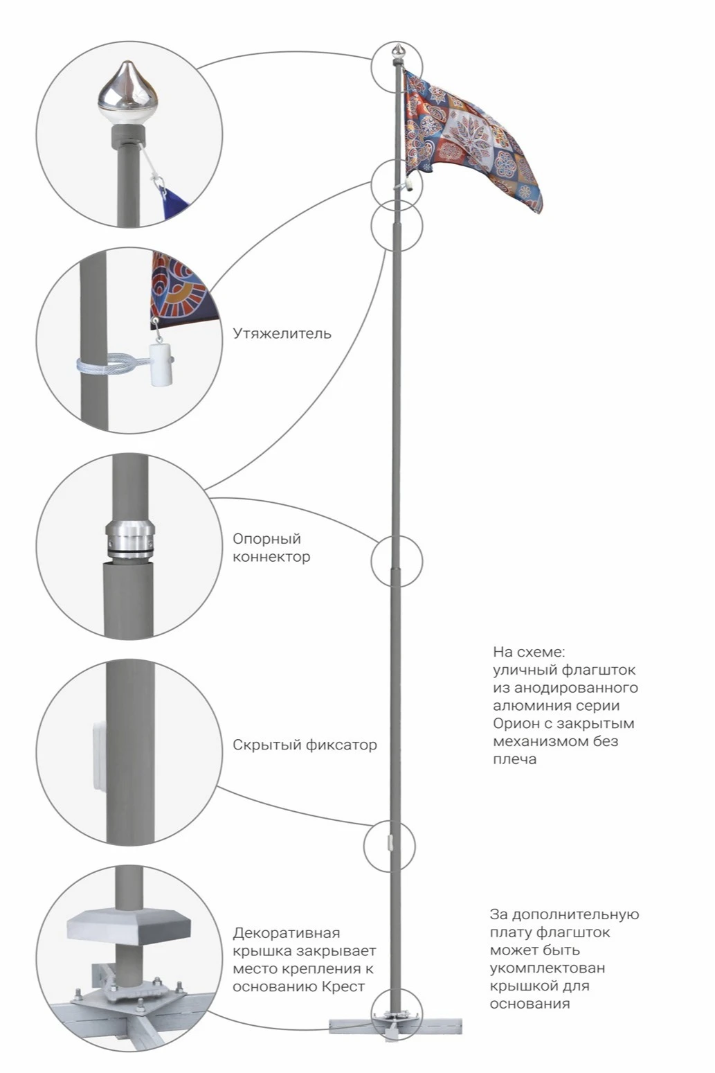Комплектация флагштока из алюминия с закрытым механизмом: