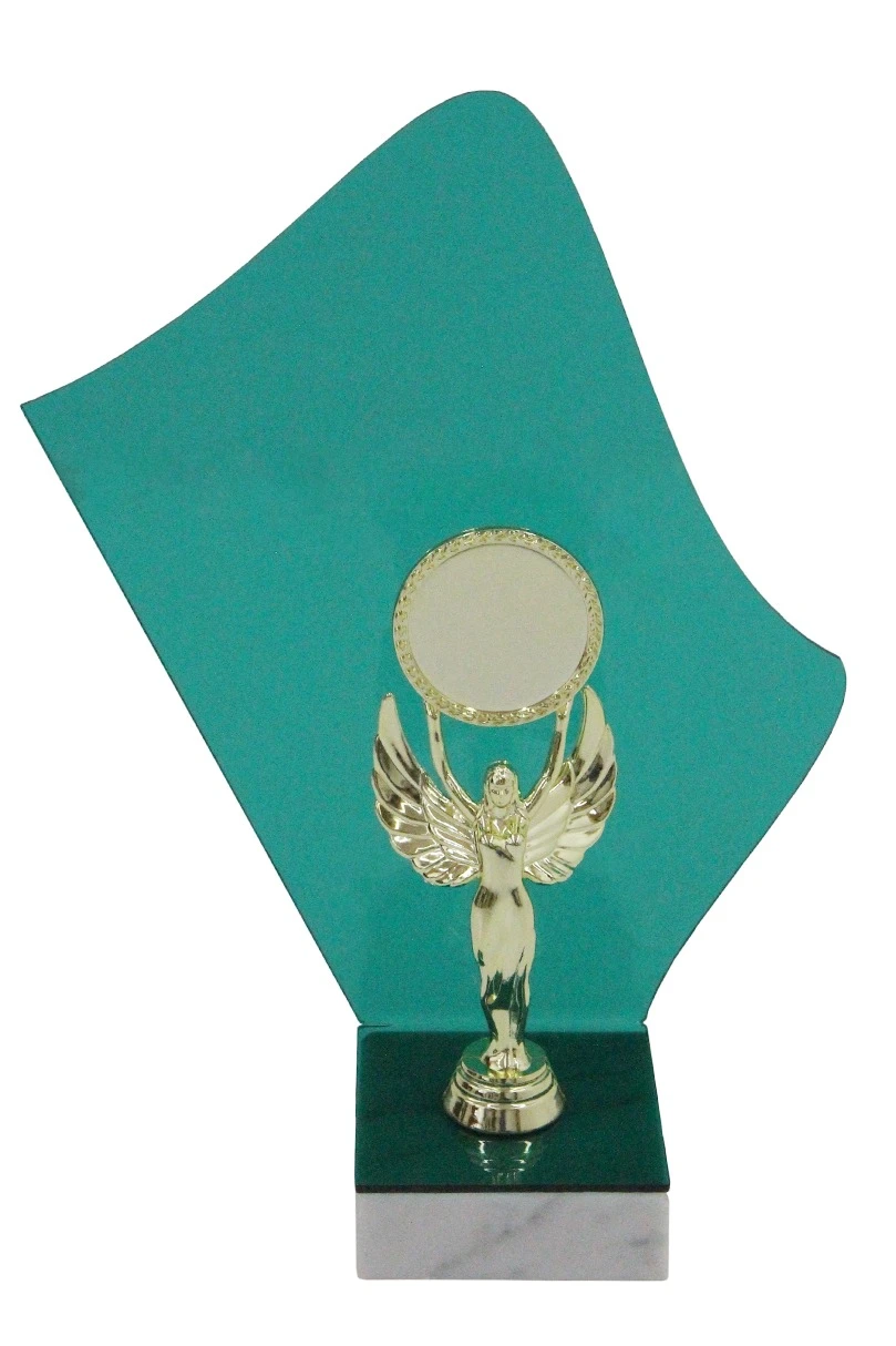 Материал: Фигура - металлизированный пластик, вкладыш из сублимационной пластины, основание - белый мрамор, задняя стенка - акрил стандартных цветов толщиной 3-5 мм.