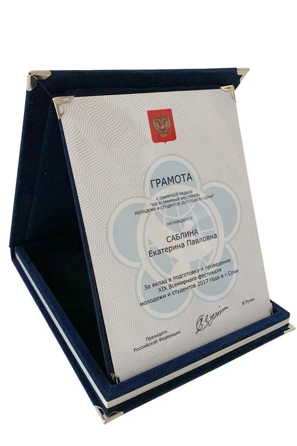 Описание: изделие представляет собой футляр, предназначенный для вручения и хранения плакетки в виде металлической пластины с нанесением изображения.