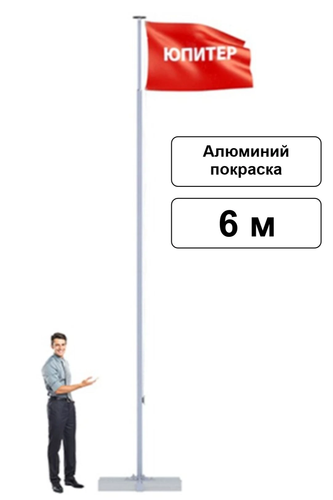 Аренда флагштока из алюминия с открытым механизмом 6 м (покраска)