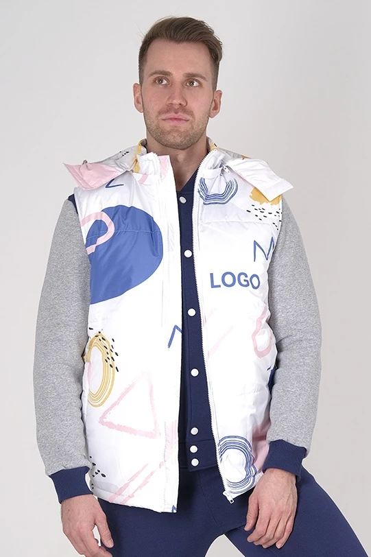 Жилет Диего премиального качества на синтепоне с капюшоном является практичным элементом гардероба. Жилет не сковывает движения и удерживает тепло внутри, поэтому он подходит как для занятий спортом, так и для прогулок на улице. Благодаря современным технологиям печати, жилет может быть выполнен в необходимом заказчику стиле. Жилеты производятся с полной запечаткой, изображения наносятся по вашему образцу.